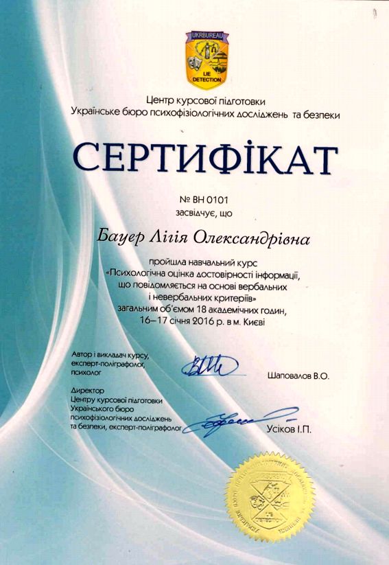 • Психологічна оцінка достовірності інформації на основі вербальних і невербальних критеріїв (Київ)
