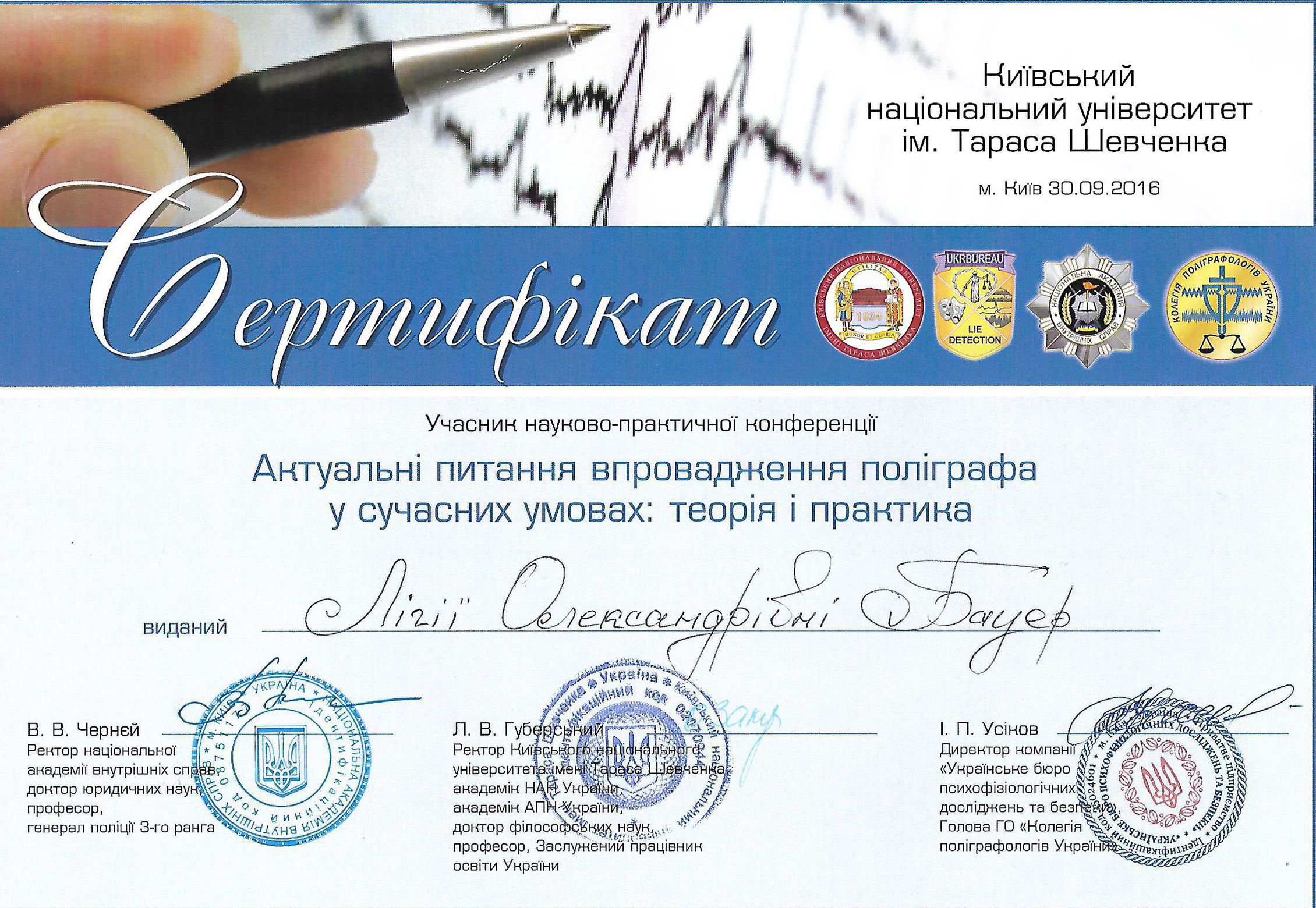 • одноденний 8-годинний курс підвищення кваліфікації для поліграфологів, Київ, Україна - грудень 2019 р.