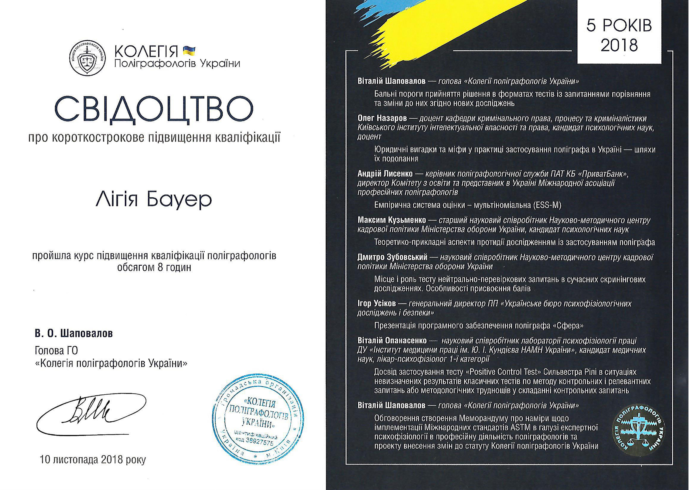 • Одноденний 8-годинний курс підвищення кваліфікації для поліграфологів, Київ, Україна - листопад 2018 р.