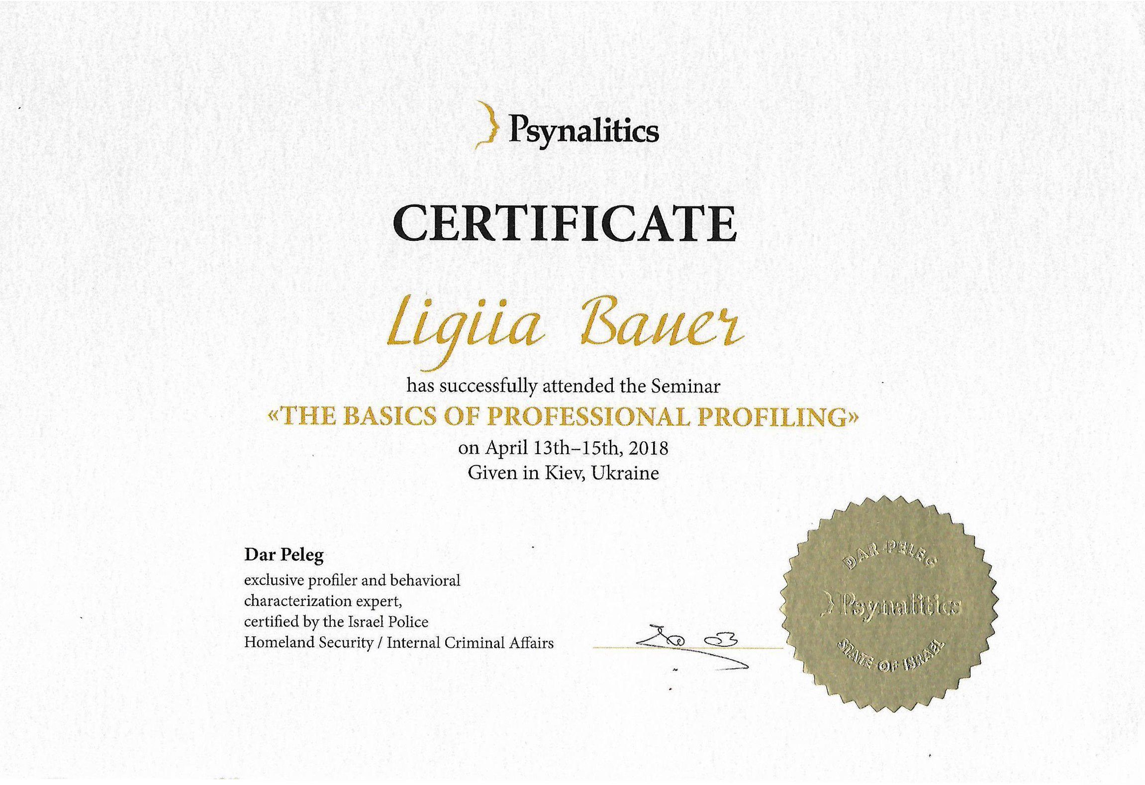 • Основи професійного профілювання, семінар Київ, Україна - квітень 2018 р.